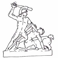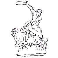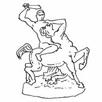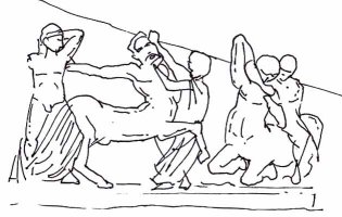 Sur le fronton d'un temple élevé à Zeus, quatre centaures sont représentés, ivres, se battant avec les convives d'une noce des Lapithe. Ils reçoivent plus de coups qu'ils n'en donnent ! Ce bas-relief est en partie reconstitué au Musée archéologique d'Olympie.