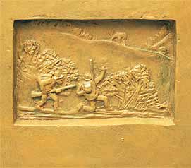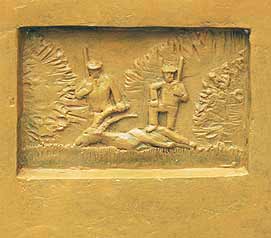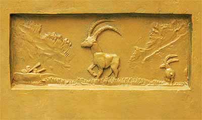 J'ai créé ensuite quatre bas-reliefs, un sur chaque face. La mort du bouquetin est racontée en quatre images :