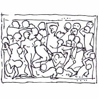 Ces quatre bas-reliefs forment une histoire, un début et une fin, presque une bande dessinée. Ils justifient la tristesse du centaure. Ce crâne est certainement celui du bouquetin abattu...