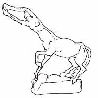 Un homme triste tient un crâne dans ses mains. Ce n'est pas Hamlet. Plus précisément, ce n'est pas un homme. C'est un centaure ! Plus précisément encore, ce n'est pas un crâne humain non plus, c'est un crâne de bouquetin.