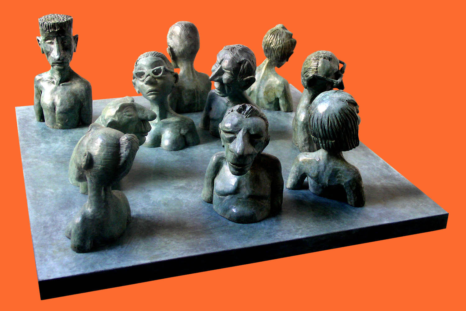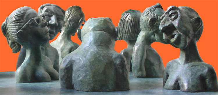 Ils ne communiquent pas non-plus entre eux.Ces personnages ont été "vivants" une fois dans leurs "existences", avant d'être figés dans le bronze. En effet, les têtes de ces personnages ont "joué" dans un film de marionnettes que j'ai coréalisé avec Pierre Veck.
