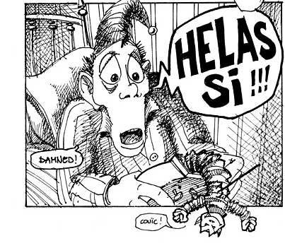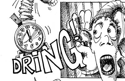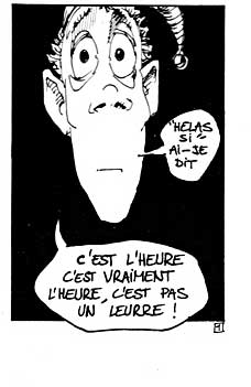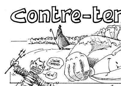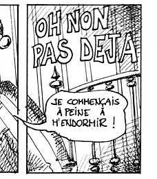Le texte des bulles de cette page: CONTRE-TEMPS L'usine t'attend ! Hé Hé ! Oh non ! pas déjà ! Je commençais à peine à m'endormir ! Hélas Si ! Damned ! Couîc ''Hélas Si'' ai-je dit. C'est l'heure, c'est vraiment l'heure, c'est pas un leurre ! |