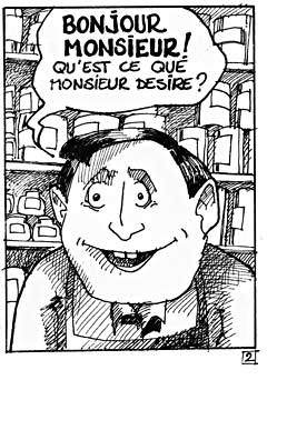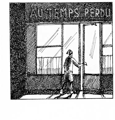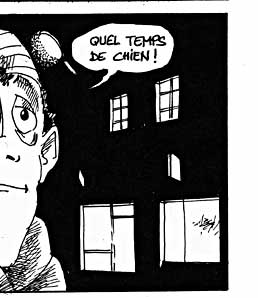 Le texte des bulles de cette page: A moins que... Quel temps de chien ! AU TEMPS PERDU Bonjour Monsieur ! Qu'est-ce que monsieur désire ? |