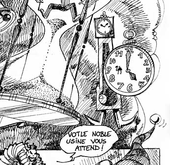 Le texte des bulles de cette page: - Noble travailleur ! Votre noble usine vous attend ! - Pas déjà ! Re-damned ! |