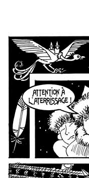 Le texte des bulles de cette page: - Attention à l'atterrissage ! - Mais que font tous ces gens ? - Ils nous attendent, comtesse ! - Je ne peux pas me présenter ainsi ! Mon chapeau ! Il me faut mon chapeau ! - Mes enfants ! Comme je suis heureux ! |