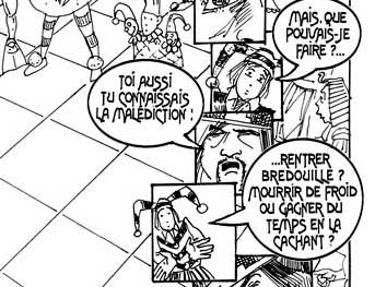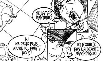 La traducción de esta página : - ¡ ARGHHH ! - ¡ Padre murió ! - Jamás tendrías de volver con este animal. ¡ Eres responsable de su muerte ! - ¿ Pero, qué podía hacer ?... - ¡ Tú también, tú conocías la maldición ! - ¿ Volver con las manos vacías ? Morir de frío ¿ O ganar tiempo escondiéndola ? - nunca regreses a casa. - ¡ Y no olvides la belleza magnífica ! - ¡ No puedes más vivir aquí, entre nosotros ! ¡ Ustedes son desterrados los dos, del palacio ! |