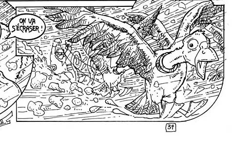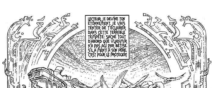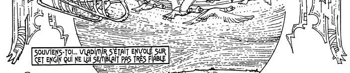 La traducción de esta página : Lector, adivino tu asombro. Voy a intentar aclararte en esta tempestad terrible : Sabe en primer lugar que vladimiro no actuó por tontería. ¡ Si mintió a su padre, es para protegerlo ! Acuérdate... Vladimiro había despegado sobre esta máquina que no le parecía de confianza. ¡ Hielo ! ¡ Llegamos, amigos ! ¡ El aterrizaje va a ser duro ! ¡ Vamos a estrellarse ! |