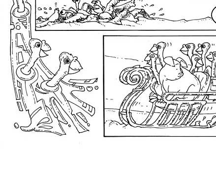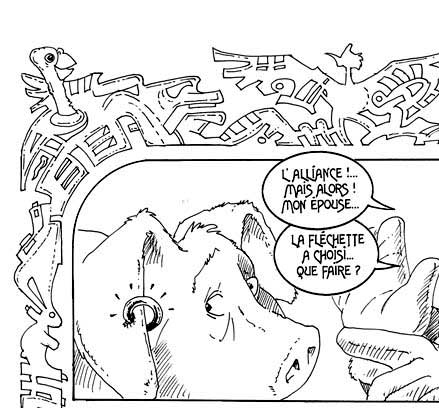 La traducción de esta página : ¡ La argolla !... ¡ Pero entonces! Mi esposa... La flechilla escogió... ¿ Que hacer ? ¡ Coraje, las aves ! Somos demasiado pesados... No movimos ni un centímetro... Resignemosnos... ¡ Veo sólo una solución única ! ¿ Voy a llegar allá ? |