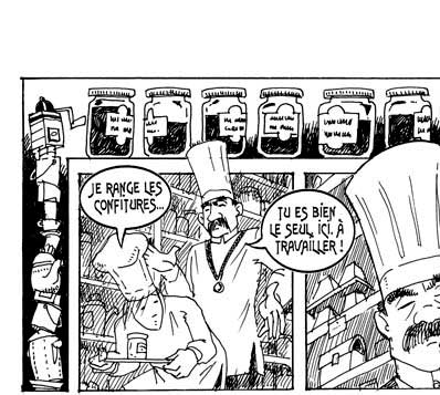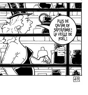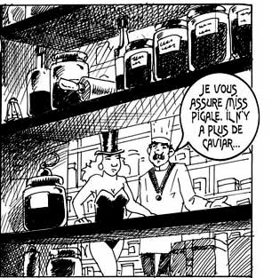 La traducción de esta página : - Arreglo las mermeladas... - ¡ Eres bien el único, aquí, a trabajar ! Las mermeladas estan en el fondo, al sección de los melindrosos… - Le aseguro a Miss Pigale, no hay más caviar... - ¡ Más caviar en septiembre! ¡ En vísperas de Navidad! |