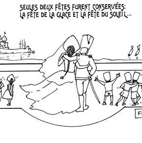 La traducción de esta página : De nuevo el cultivador cosechó, el molinero molió, el panadero amasa y las reservas se llenaron. - Señor conde, son tripletes... - ¡ Todavía ! Dos fiestas fueron conservadas, únicamente: la fiesta del hielo y la fiesta del sol... ...Lo que es ya mucho menos gracioso. |
