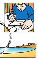 Le texte de cette page: Paroles sur garçon: La première fois quand je lui ai dit comment je m'appelais... Elle m'a parlé de Proust ! Alors j'ai lu Proust. Ya pas idée de s'appeler Marcel! Son courrier épistolaire et commentaires: Sur les marches du palais... hum... du palais de ton coeur... mon amour... (oh non c'est trop con ça!... je recommence...) Mon amour je m'ennuie de toi... (non ! je vais passer pour un couillon!)... Chérie de mon coeur, je m'amuse beaucoup il fait un temps superbe, le bleu de la mer me rappelle le vert de tes yeux, le moelleux du sable, la chaleur de ton... (heu, je ne peux pas lui écrire ça ! je sens qu'elle ne va pas aimer... |