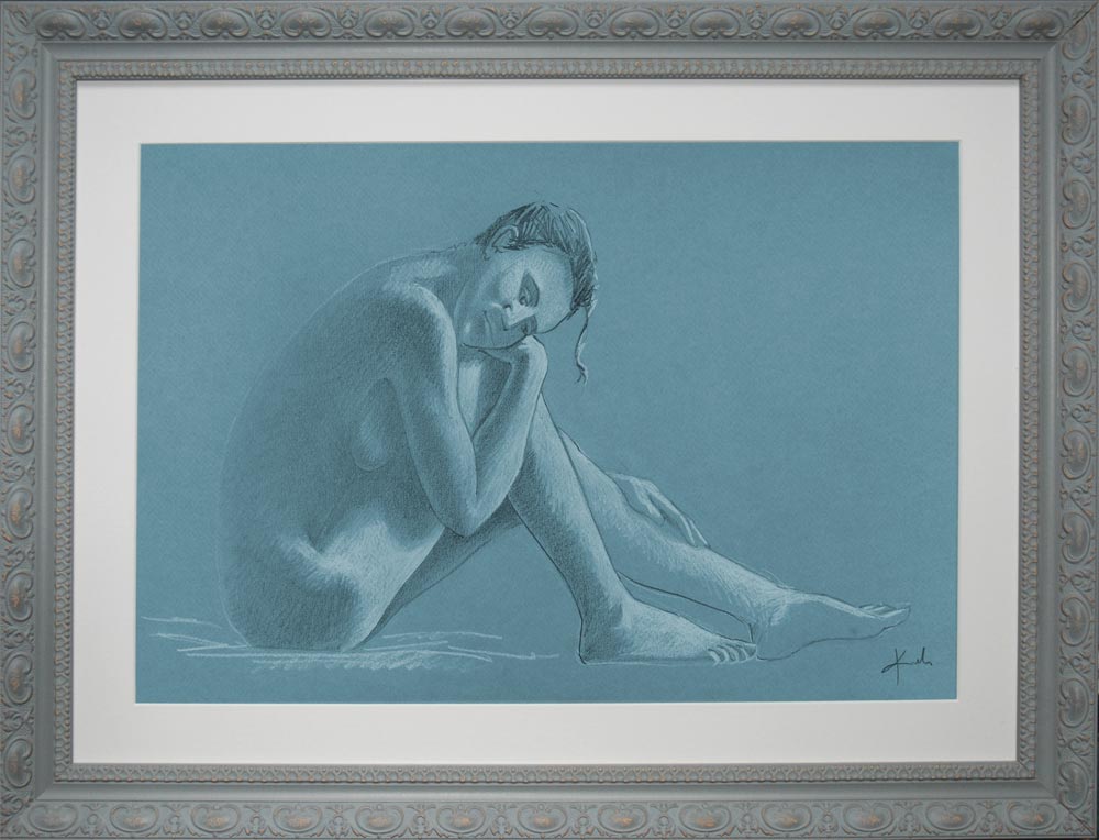 Ce dessin est encadré comme "Nu tendu". même baguette, même passe-partout, même dimensions. Ces deux dessins, issus de la même séance de pose, vont ensemble.