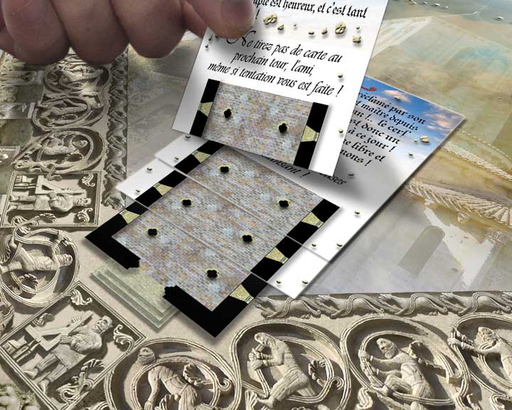 Am Boden jeder Karte wird ein Teil des Plans romane Kirche gezeichnet.