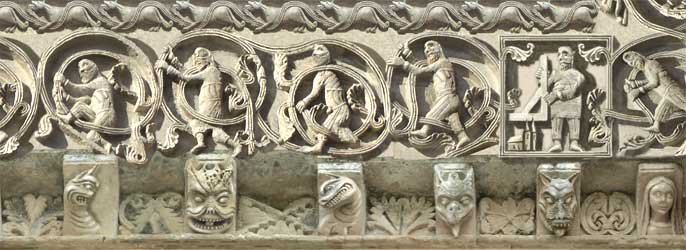Die Skulpturen modillons sie, und sie frises ausgehend von den Elementen der Kirchen verwirklicht worden sind von Saintes, Melle, Aulnay, Saujon, Merignac, Colombiers, Fontaine d'Ozillac, alle, die sich in Poitou-Charentes befinden.