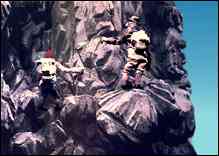 ![]() | With the turning of a paroie, the first of cord seeks something with the binocular. It has a shock! It warns his companion… The camera discovers an animal mislaid on a very pointed rock piton! |