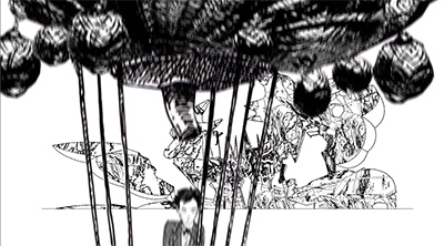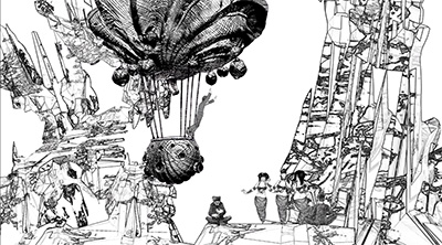 Another possibility: the Orient. An imaginary Orient populated by joyful nations The Orient, which perhaps will free him from his torpor. A balloon carries him into the sky. |