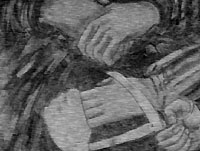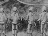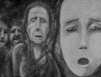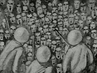 In a stage, soldiers keep men and women. (All the film at summer carried out image by image, the charcoal, directly under the camera). |