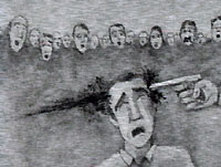 The head cannot support that! He sticks his revolver on the temple of the singer and car. The image is immobilized. |