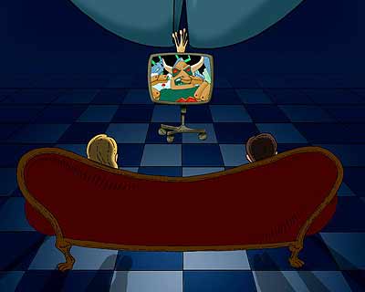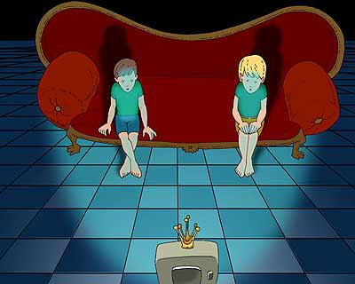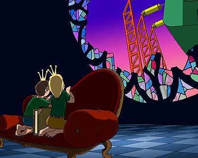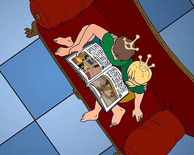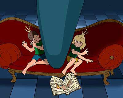 The boy and the girl are again intertwined. The shade of their imaginations runs on the file of the couch..