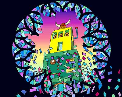 It is an emission for youth. A robot (it seems to be the same one) destroys the city in a deafening din!