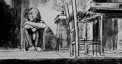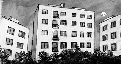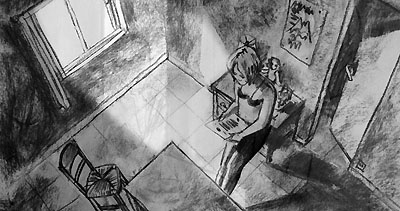 The camera pulls back and joined a woman who returns his clothes in his council flat.