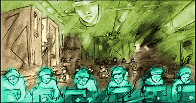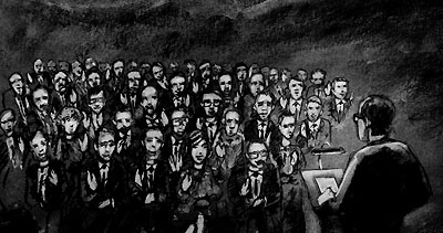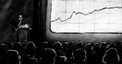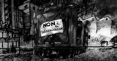 During a meeting, he tries to convince his board of direction to move their factories abroad.