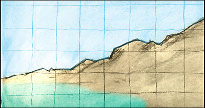 The graph becomes idyllic beach. A naked young woman soaks in a radiant sea.