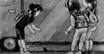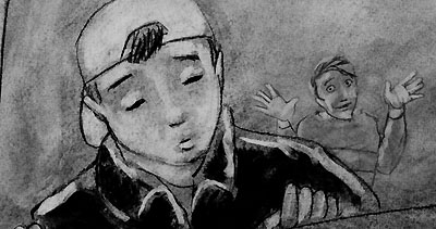 The young to the cap is the only one which survives. He runs away from the accident quickly.