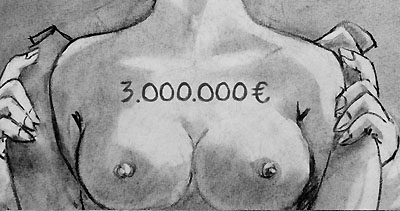 The presenter propose to competing woman to show her breasts to triple its earnings.
