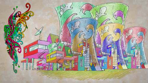 Minstrel (voice over : But at that very moment, Dame Fleurette, the nuclear reactor unloaded a lump of waste, the size of the horse's poop. Henry : Hullo! What is this yonder ? Inventor : Oh, that? Nothing. We call it nuclear waste... |