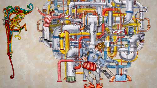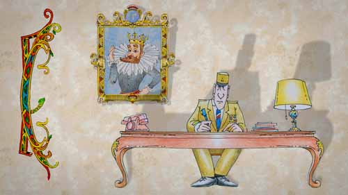 Minstrel (off) : But let's dwell on this one… Inventor : Sire, may I come in? Henry (voice over) : Indeed, my good friend, what have you to sell me ? Inventor : Good my lord, I've invented nuclear energy! Henry (voice over) : Nuclear energy? Well, I'll be |