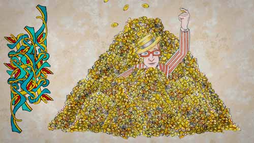 Minstrel (voice over) : And so it was that the commoner who invented nuclear energy was covered with gold. Inventor : More ! Minstrel (voice over) : He lived happier than a prince, and died very old... |