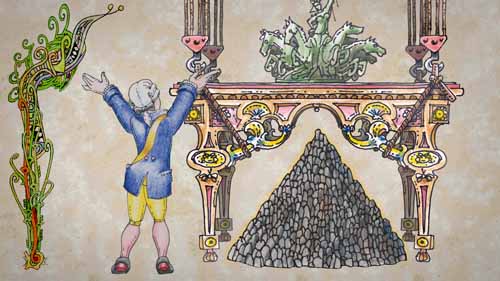 Minstrel : ... And worse than that, my beloved! It was dangerous ! Dame Fleurette : Really? Minstrel : It had to be watched day and night !...For years! What am I saying ? For centuries !... More exactly 600 years. Until 2100 ! |