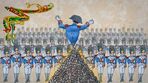 Minstrel (voice over) : The Napoleon said... Napoleon : "Soldiers, from the top of this pyramid of waste, forty centuries fuck you up..." Minstrel (off) : But he didn't find a solution either. After the kings, There were republics, and presidents who all without exception cursed good King Henry IV and his nuclear waste. |