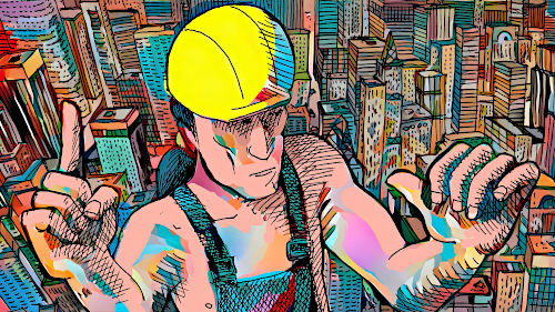 The empire state building is under construction. The workers are on lunch break. The team leader realizes that a monkey wrench has been forgotten on a metalic beam. He sends a worker to pick it up... |