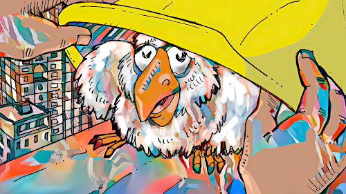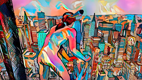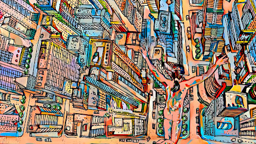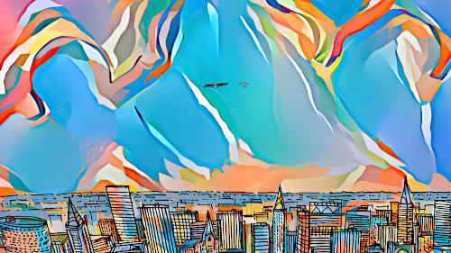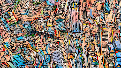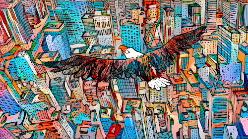 and carries him away on his back over New York. |
