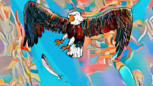 The eagle and the Indian fly side by side towards the horizon... |