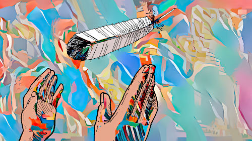He releases one of his feathers. |
