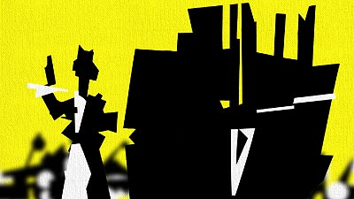 The Maiakovski'reflexions are expressed by geometrical forms. (in a abstract style) The drinkers of the breweries of Montparnasse are represented by abstract forms, more aggressive... |
