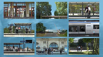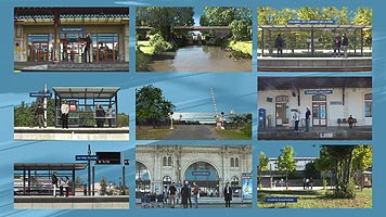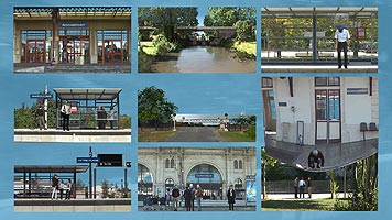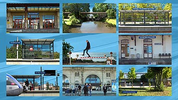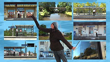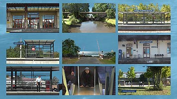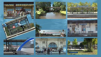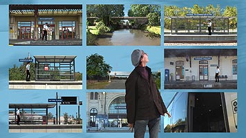 The film is presented, with the first access, like a security-screen including 9 images. The train leaves the box top on the left, Rochefort, it will appear in all the boxes successively and will finish its way in bottom on the right, Dauphine station in La Rochelle. On the other hand, Mr Bipole passes from a box to the other as if he passed from a room to an other... | |