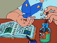 Editing: A man aprête to fall asleep a butterfly to pin it in its collection... |