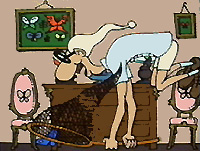 But the butterfly escapes! It leaves to its continuation, climbs on the pieces of furniture, jumps in the staircase... |