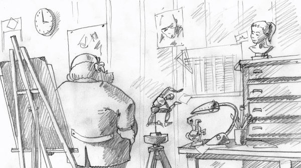 In a room of drawing, a professor awaits his model. He prepares the heating and receives the