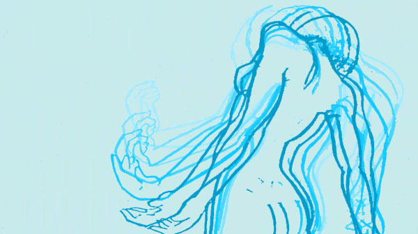 Last sequence of a film which comprises a score of it. The scéance is finished. The model rises and its image solidifies bus at the bottom... the animated drawing, also, it is to him drawing... |