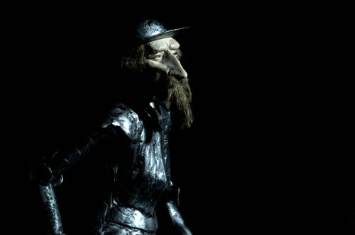 When Don Quichote collapses the guests, It tries to speak to them, but it does not have any more the force. |