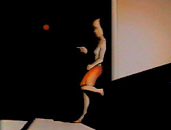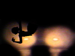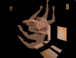 When the light of the room ignites, one attends the overprinting of two bodies. These two motionless bodies are in rotation one compared to the other. One sees especially the abstract mixture of both. It is more one fantasmée projection of the Peeping Tom, that reality. |