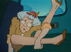 | Bon, la grand-mère comprend qu'il vaut mieux pour elle d'attacher sa ceinture... |