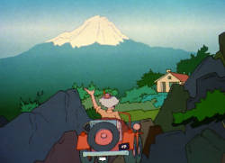Il se précipite et rattrape Grand-mère avec son parachute! Mémé danse et chante avec les chameaux. |