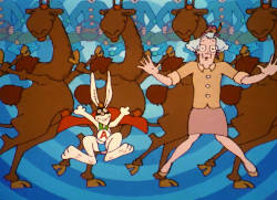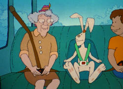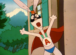 | Le super-Lapin freine au maximum pour éviter un accident. |