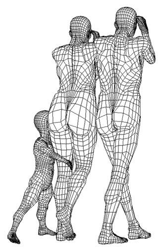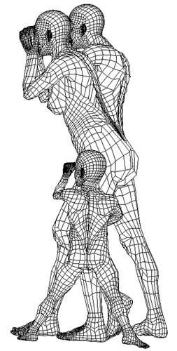 I was afraid to engage in an unchecking project. It is easy to modify an arm when it is 10 cm, but this poses great technical difficulties when it is real size... It was therefore necessary to anticipate the possible stages of construction. So I decided en first, to model my three characters in 3D. For this, I used the free software "MakeHuman" (very fun).
